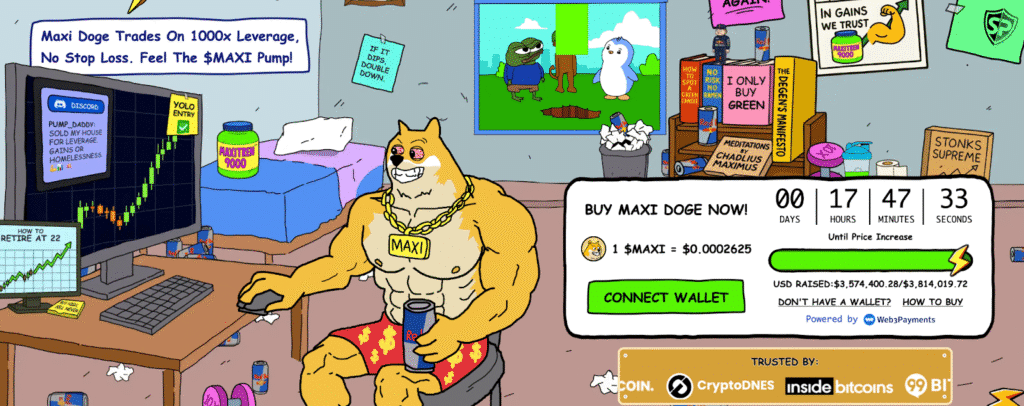 Dogecoin занимает сильную позицию в текущем рыночном цикле. В то же время внимание инвесторов обращается к Maxi Doge ($MAXI), мемкойну, построенному на Ethereum, который также демонстрирует хорошие результаты. Maxi Doge сочетает в себе классические мемы старой школы с юмором современных фанатов криптовалют и кредитного плеча. В настоящее время идет предварительная продажа токенов $MAXI. Маркетинговый токен прямо из спортзала открывает рынок на основе современных мемкоинов, не забывая и о безопасности. На сайте проекта сообщается, что предварительная продажа обеспечивается технологией Web3Toolkit. Кроме того, смарт-контракт $MAXI проверен SolidProof and Consult и доступен в криптовалютном кошельке Best Wallet.