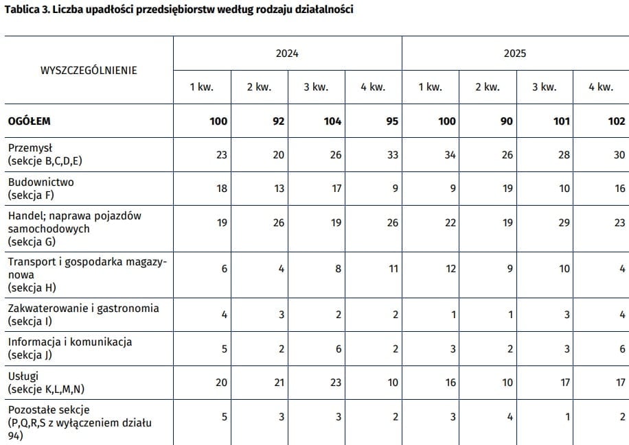 Что особенно тревожит в банкротствах в корпоративном секторе, так это тот факт, что проблема затрагивает даже предприятия с давними традициями, которые до недавнего времени были лидерами в своих отраслях. Уже в первые дни 2026 года кризис преодолел, в частности, Стомил-Познань. Это старейший шинный завод в Польше, который начал работать в 1982 году. После нескольких лет финансовых проблем 2 января общее собрание акционеров приняло предложение о роспуске компании.. После закрытия завода 119 человек потеряют работу.