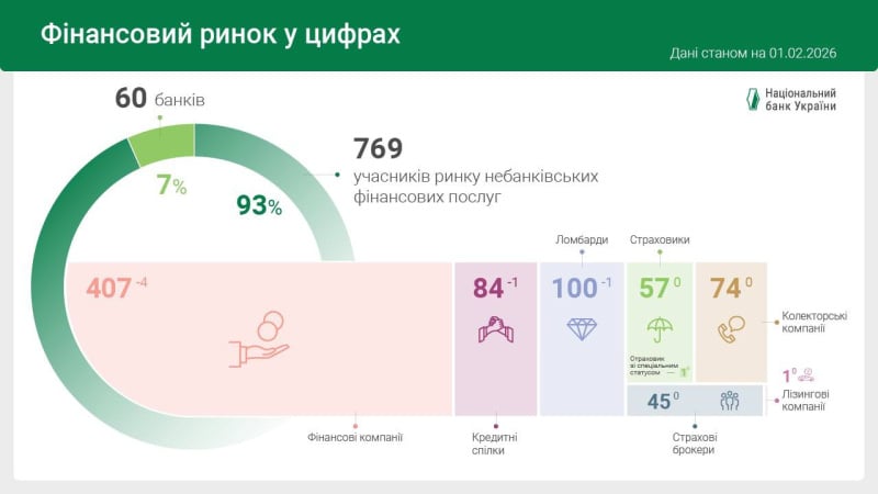 По состоянию на 1 февраля 2026 года на рынке небанковских финансовых услуг действовали: