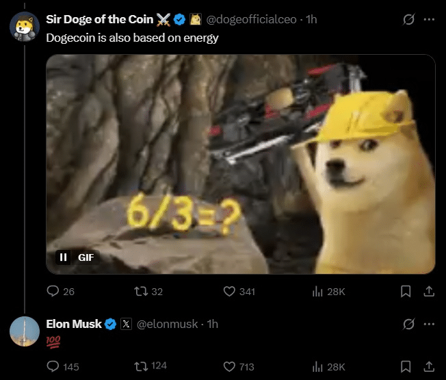 Таким образом, генеральный директор Tesla напомнил о своей классической позиции. Биткойн имеет ценность, потому что требует реальных затрат энергии, а не политических решений. Спустя несколько мгновений популярный аккаунт Sir Doge of the Coin добавил: «Dogecoin также основан на энергии». Маск ответил только смайликом «100», и этого было достаточно, чтобы фанаты DOGE начали действовать. Пост собрал тысячи репостов, а политик Мэтт Гаец даже спросил: «Неужели Dogecoin просто становится глобальным служебным токеном?!»
