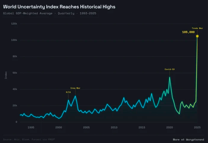 Глобальный уровень тревоги достиг беспрецедентных значений, превзойдя показатели времен пандемии коронавируса, мирового финансового кризиса и терактов 11 сентября. Несмотря на это, американские фондовые рынки и драгоценные металлы демонстрируют стремительный рост на фоне обесценивания доллара, в то время как главная криптовалюта мира пока теряет свои позиции. Об этом сообщает издание The Street.