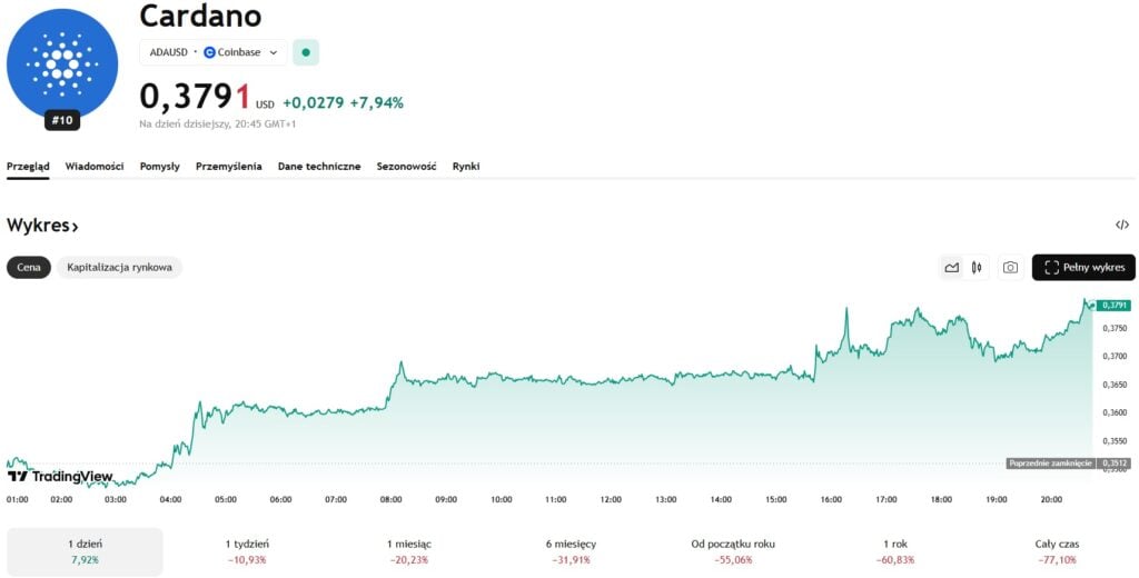 На момент написания популярный альткойн стоит 0,37 доллара США и значительно восстановился за последние 24 часа. За сутки монета выросла почти на 8%. Однако как за неделю, так и за месяц токен упал на 10,92% и 20,23% соответственно. Индикатор YTD (Year To Date) также значительно снизился. С начала года Cardano потерял 55,06% своей стоимости. Только за последние шесть месяцев токен потерял более 30%.