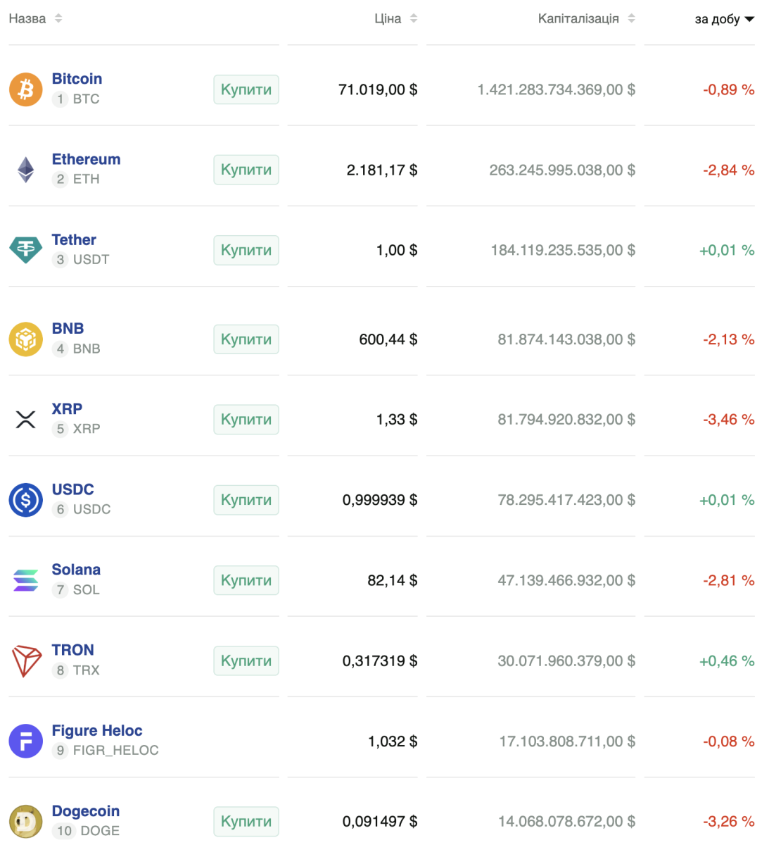 К моменту написания новости цена биткоина опустилась до $71 019. За сутки актив потерял 0,89%. Ethereum торгуется на уровне $2181, суточное падение составляет 2,84%.