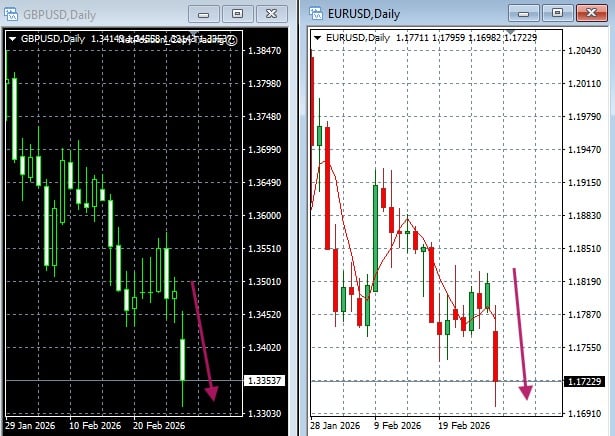 Евро улетает вниз 0,8%, фунт почти на 1% вниз. Мир возвращается к доллару, потому что на фоне коррекции фондовых площадок нужно где-то парковать деньги. Об этом написал финансовый аналитик Андрей Шевчишин.