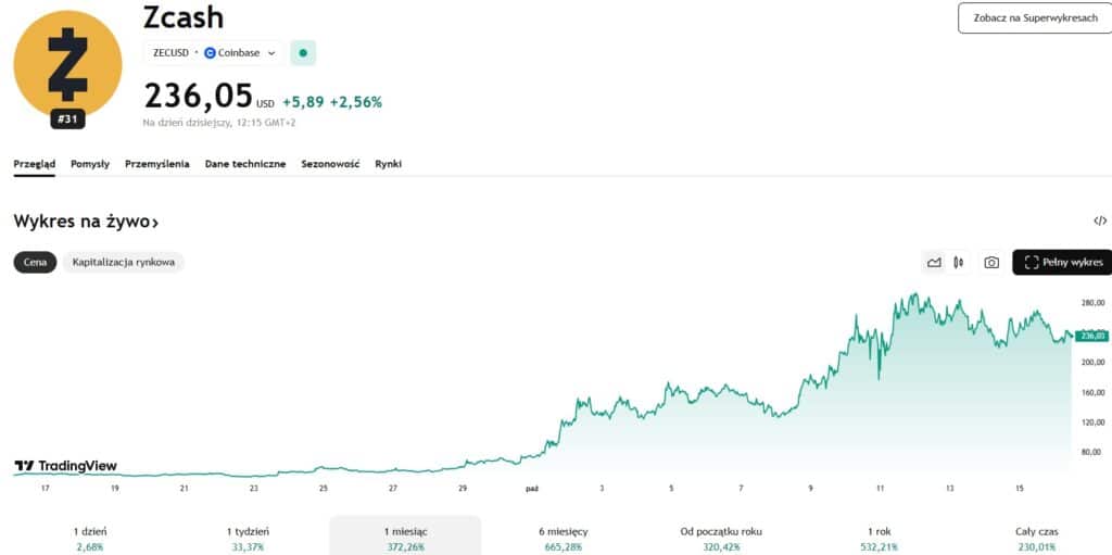 Zcash вырос более чем на 300% за месяц. Отличное возвращение после многих лет на дне