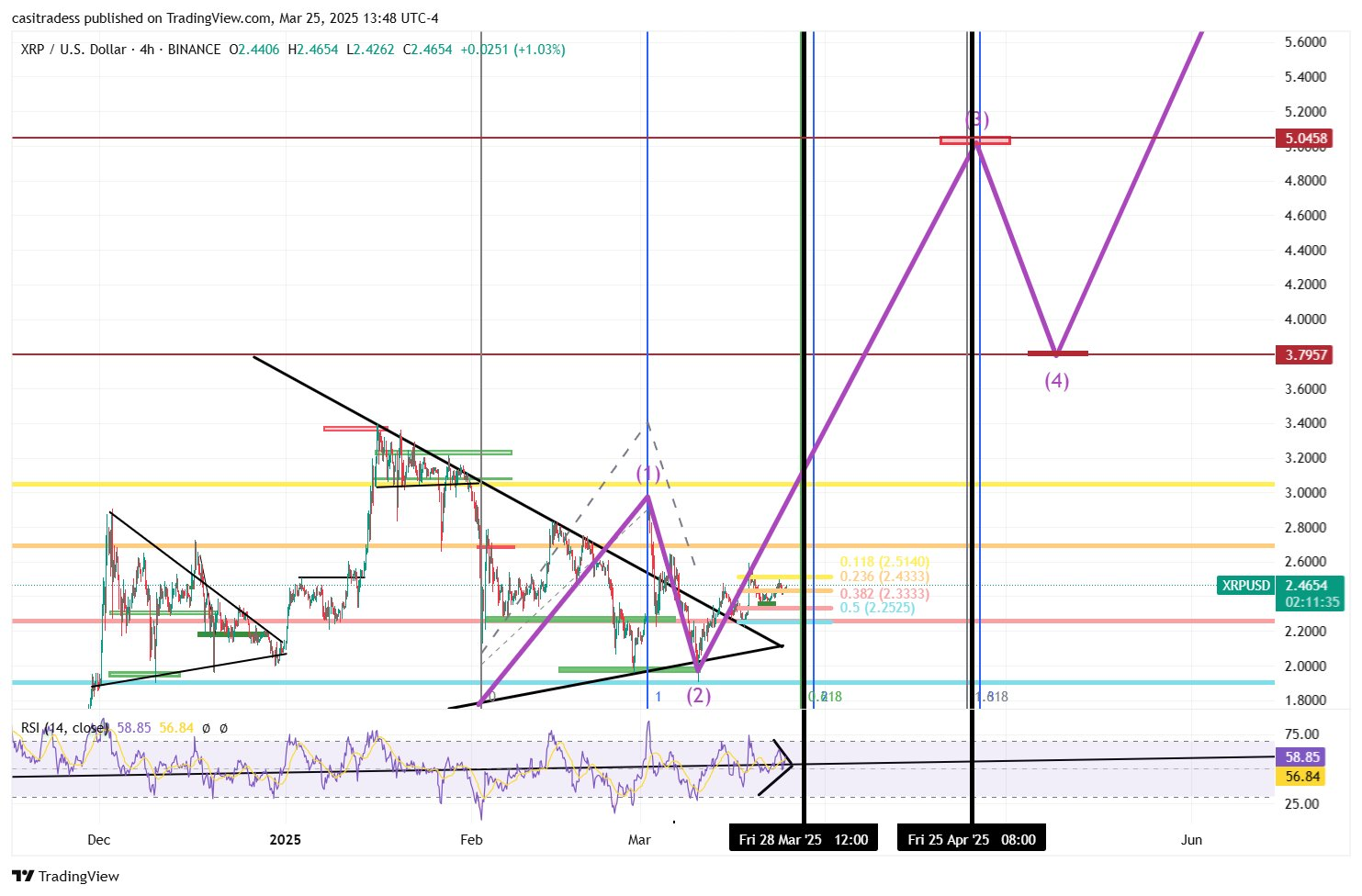 Недавние рыночные движения являются результатом позитивного настроения, особенно в свете растущего институционального интереса. За короткий период XRP институциональные покупатели накопили более 150 миллионов токенов. Аналитики предполагают, что чистое разрыв выше сопротивления при 2,62 USDT может привести к увеличению на 60%. Другая значительная цель будет уровень 3,78 USDT, основанный на уровнях расширения Fibonacci.