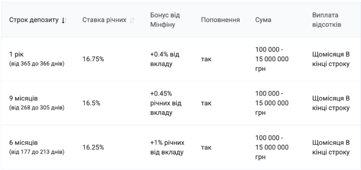 - Минимальная сумма депозита от 100 000 грн.