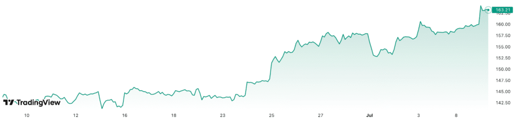 Все еще в апреле ситуация не выглядела такой радужной. Тогда цена акций NVIDIA упал до 93 доллароввкл. коммерческой напряженностью между США и Китаем. Высокие обязанности — даже 145% — поразили компанию, зависимую от азиатских партнеров.