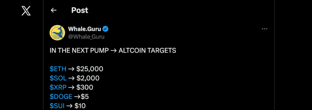 Помимо XRP, Whale.Guru поделился амбициозным набором прогнозов для других ведущих альткойнов:
