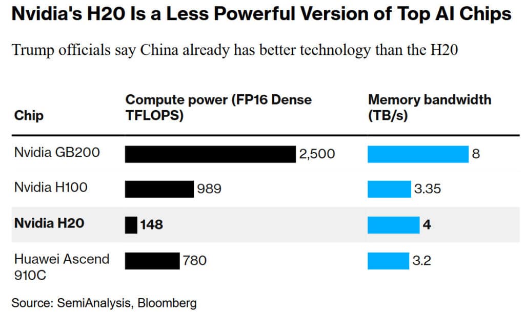 Теоретически, это должно было быть ударом для контроля риска. Позвольте китайским компаниям получить доступ к технологии среднего класса, но не до последних. На практике Пекин, по -видимому, не искал такого «подарка», и теперь, играя на двух пианино, официально допускает ограниченные покупки H20, но ограничивает их и поощряет миграцию в свои системы.