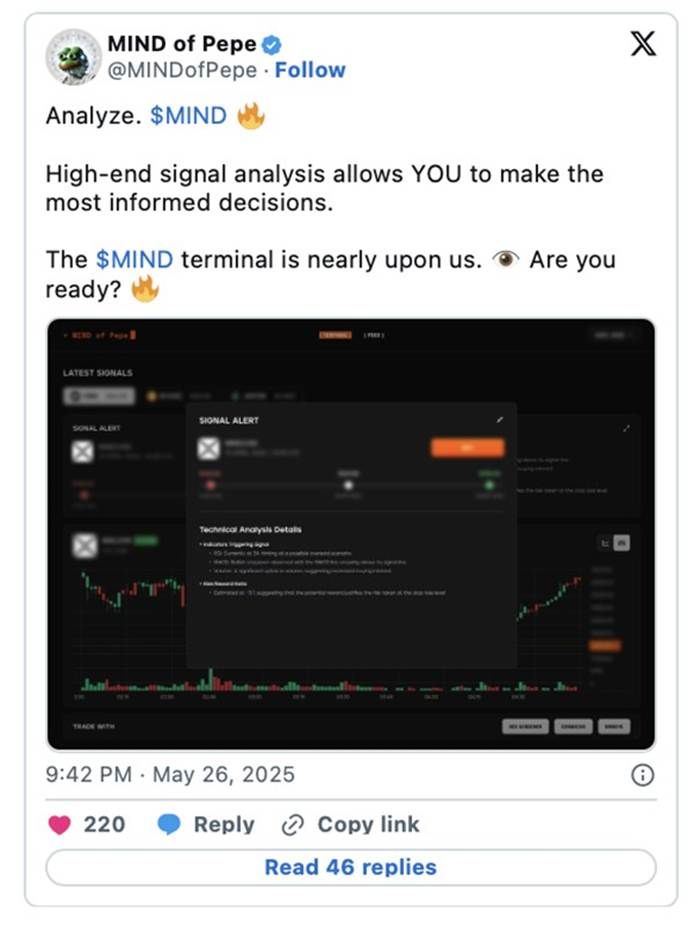 Таким образом, он доказал, что Мемоины означают не только веселье, но и Прибыль, которая меняет жизньПолем Тем не менее, рынок все еще созревает, и теперь инвесторы не ищут только ажиотаж — они ожидают полезности и реальной ценности. И здесь появляется ум Пепе ($ mind).