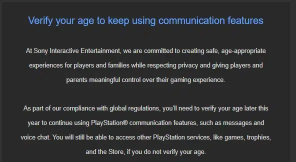 Некоторое время назад проверку возраста внедрили, в частности, Discord или Roblox. Оказывается, нам также придется подтверждать свой возраст на консолях. Игроки PlayStation в Великобритании и Ирландии были очень удивлены, когда в последние дни в их почтовые ящики пришли электронные письма от Playstation, в которых сообщалось, что им придется подтвердить свой возраст позднее, в 2026 году. Как поясняет компания, это необходимо для соблюдения глобальных правил.