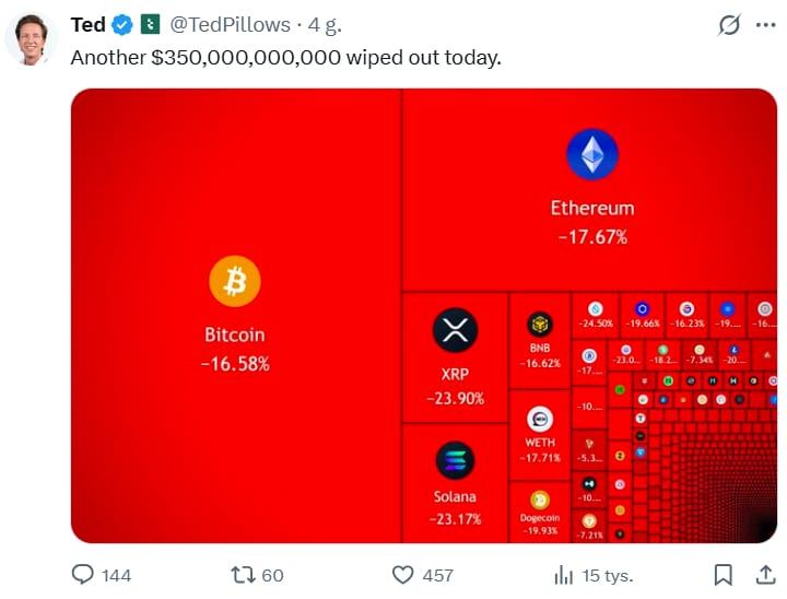 Том Ли разделяет аналогичное мнение, отмечая, что политическая неопределенность в Вашингтоне перенаправила капитал в драгоценные металлы, хотя они также столкнулись с временной волатильностью. Эксперт Бенджамин Коуэн, в свою очередь, предостерегает от сценария, при котором Биткойн может упасть даже до уровня 35 000 долларов США, если текущая структура рынка не будет сохранена. В свою очередь, аналитик по имени Тед Пиллоуз отметил, что потеря ключевых скользящих средних на недельном графике исторически часто предвещала тест области в 68 400 долларов.