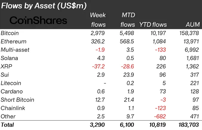 Инструменты, основанные на биткойнах, собрали 2,98 миллиарда долларов против 557 миллионов долларов в неделю ранее.