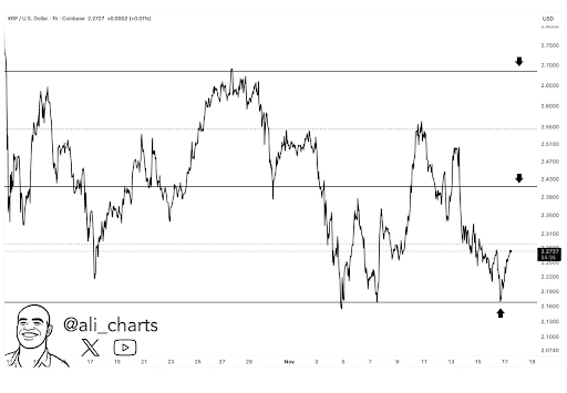 Помимо ожидаемого притока институционального капитала, технические графики XRP демонстрируют признаки восходящей динамики. Цена XRP в настоящее время консолидируется выше ключевого уровня поддержки в $2,15 — критической зоны, которая уже обеспечивала стабильность в предыдущие периоды волатильности. В настоящее время цена XRP составляет около $2,21. Аналитики отмечают, что пребывание выше уровня 2,15 доллара США может спровоцировать продолжение роста в направлении диапазона 2,40-2,70 доллара США.