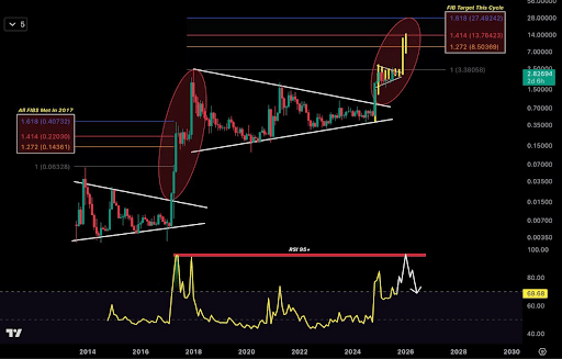 На момент написания XRP торгуется на уровне $2,50 при умеренном дневном объеме. Технические аналитики наблюдают тенденцию повышения минимумов с конца октября, что предполагает стабильное накопление. Индекс относительной силы (RSI) остается выше 50. Это указывает на продолжение восходящей тенденции.