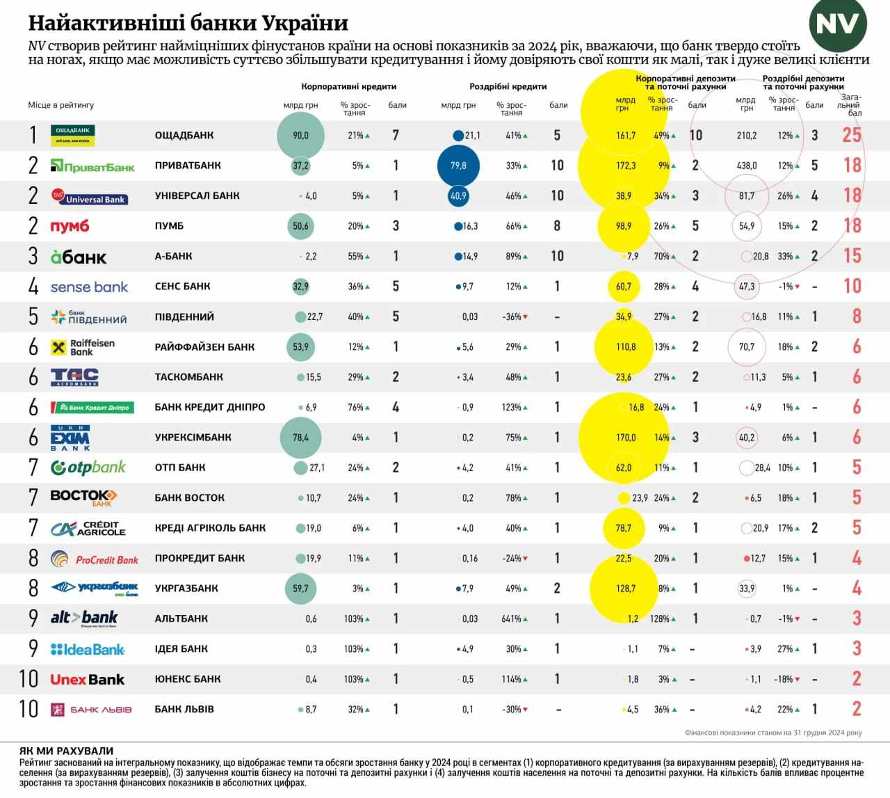Первый украинский международный банк (PUMB) занял второе место в компании Dragon Capital Investment Company и New Voice. Рейтинг включал 20 банков, которые в 2024 году наиболее активно одолжили население и бизнес, а также собрали средства для портфелей депозитов.