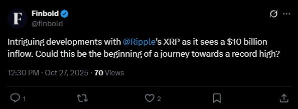 Позитивным фактором может стать допуск в обращение спотовых фондов XRP ETF. Однако здесь все еще неясно из-за закрытия правительства США.