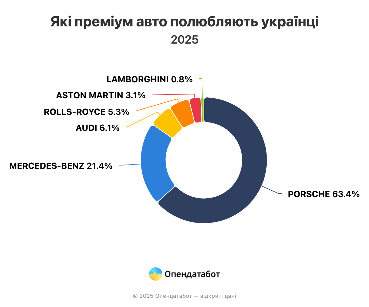 63% всех автомобилей, импортированных в Украину, в роскошь, в этом году — Porsche. В частности, популярные Porsche Taycan и Porsche Cayenne E-Hybrid-41% и 8% всех автомобилей соответственно.