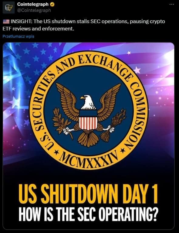 Интересно, что электронная система SEC по -прежнему принимает приложения, поэтому процедуры официально продолжаются, только их фактическая реализация была сдвинута вовремя. Это классический пример того, как политическая суматоха в Вашингтоне может потрясти финансовый рынок, не выходя в заголовки. В случае криптовалют, которые уже сами по себе являются высокой изменчивостью, каждый день задержки в решении регулятора ощущается.