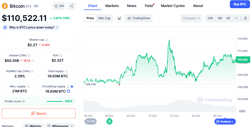 На платформе Polymarket вероятность снижения процентной ставки на 25 базисных пунктов в октябре выросла до 97%. Биткойн отреагировал быстро, вернувшись в какой-то момент выше $111 000.