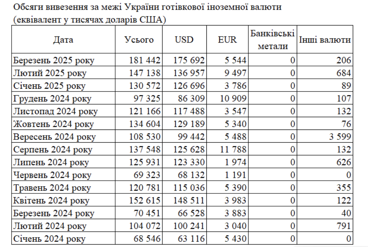 В то же время банки экспортировали наличные деньги за 181 миллион долларов.