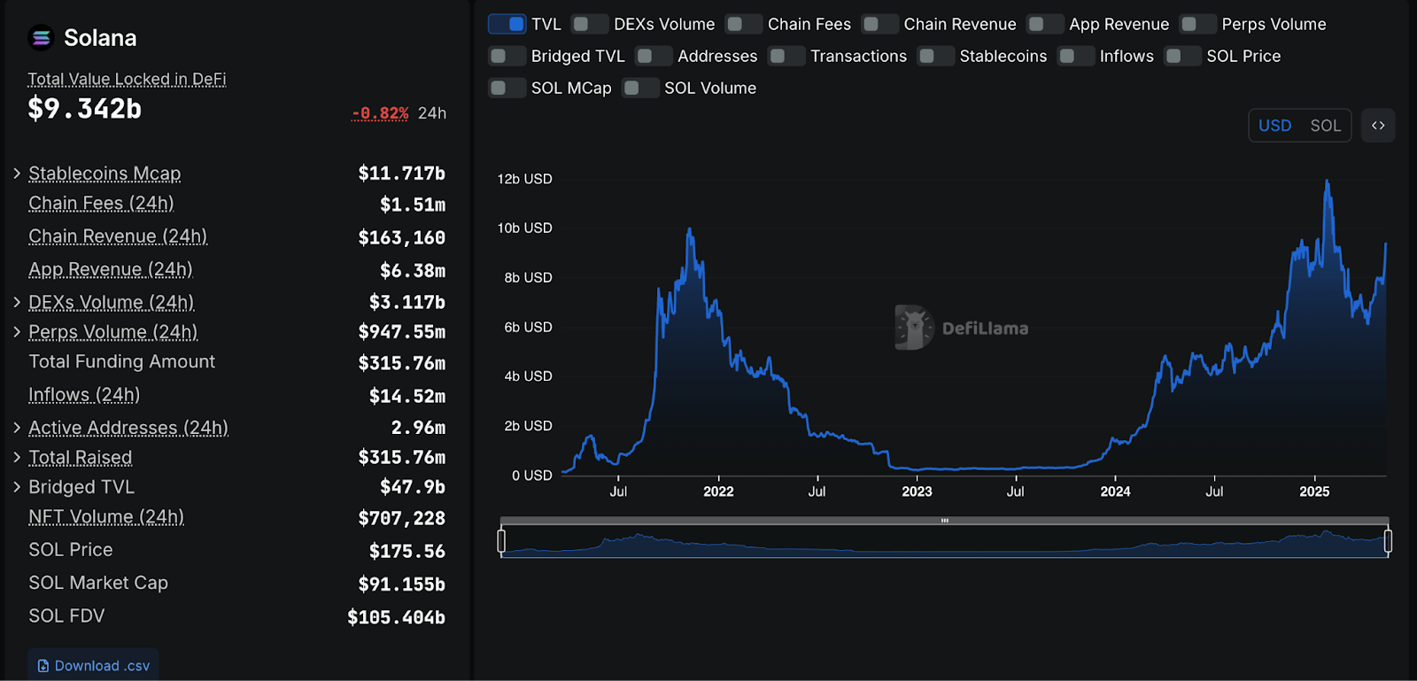 Defi Development Corp., ранее известная как Janover, инвестировала еще 12 миллионов долларов США в сеть, а также захватила оператора Verifier с транзакцией, поддерживающим в среднем 500 000 долларов США — около 75 миллионов долларов США. Общая стоимость, заблокированная в DEFI для соли, приближается к записи 11,8 млрд долларов. В настоящее время составляет 9,34 млрд. Капитализация рынка стаблеки в сети превысила 13 миллиардов долларов.
