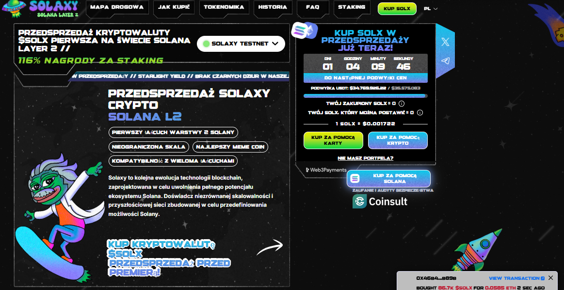 Я говорю о Solaxy Tokena, который является первым решением второго слоя, созданного для Solana. Десятки миллионов собранных средств являются доказательством того, что инвесторы видят в нем потенциал реального улучшения. В первую очередь речь идет о производительности, стабильности и устранении ошибок, которые беремтируют сеть в течение предыдущего цикла.