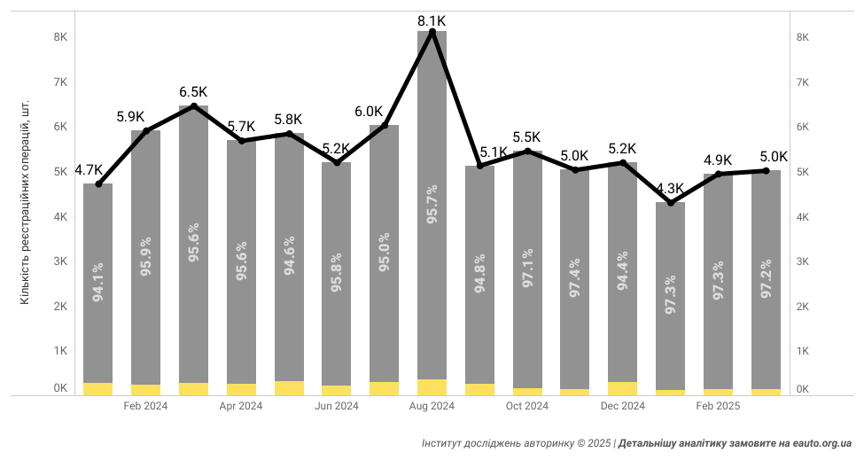 В январе в январе в январе около 4,8 тысяч новых автомобилей были проданы каждый месяц. В тот же период 2024 года автодилеры оставили около 5,7 тысяч новых автомобилей.