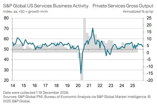 Это не данные о рецессии, но они больше не являются данными о «безопасной мягкой посадке». PMI ясно показывает, что американская экономика вступает в 2026 год со значительно меньшими темпами, а пространство для маневра монетарной и фискальной политики начинает сужаться.