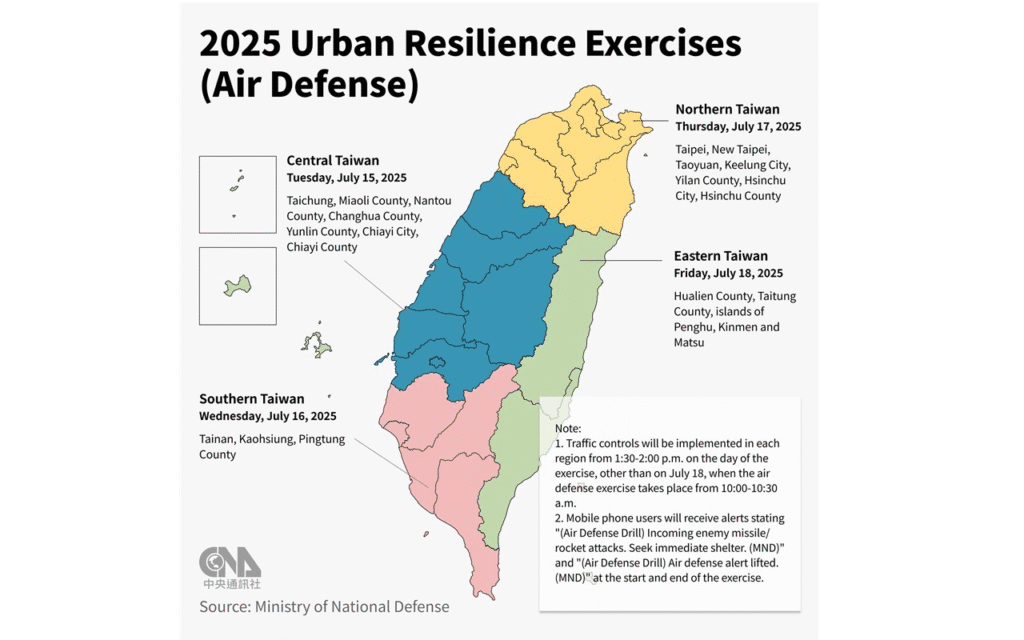 Рассматриваемая дата, естественно, является датой вторжения в китайский язык — трудно ожидать, что кто -то объявит публично (даже если китайская атака на Тайвань, если это действительно придет к нему, безусловно, потребует длительных подготовков, довольно легко увидеть разведывательные службы). Речь идет о упражнениях, но не «обычных» военных маневрах, а упражнениях в масштабе всей страны. С 9 по 18 июля Тайвань пройдет огромные маневры Хан Куанг. Хронологически 41-но уникальный.