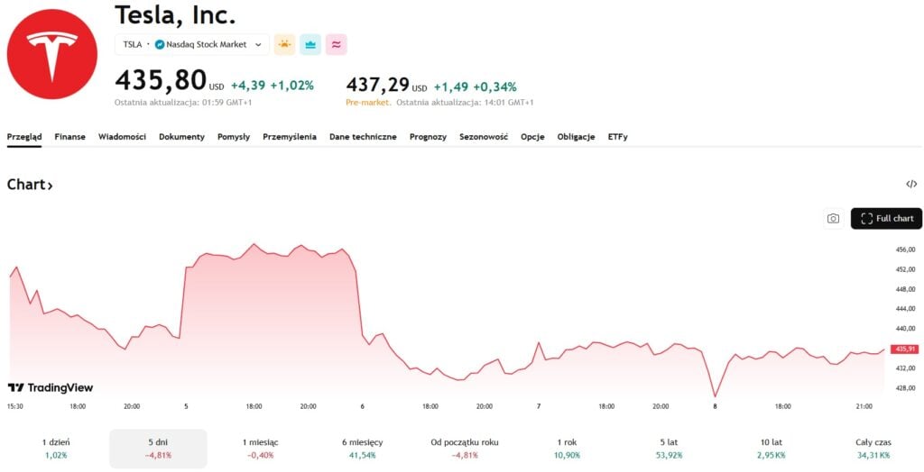 Компания уверенно восстановилась, особенно в последнем квартале 2025 года. Однако, как и прежде, новый год начался для гиганта со значительного падения. По итогам недели акции TSLA торговались в диапазоне $426-439. За всю прошедшую неделю акции Tesla упали почти на 5%.