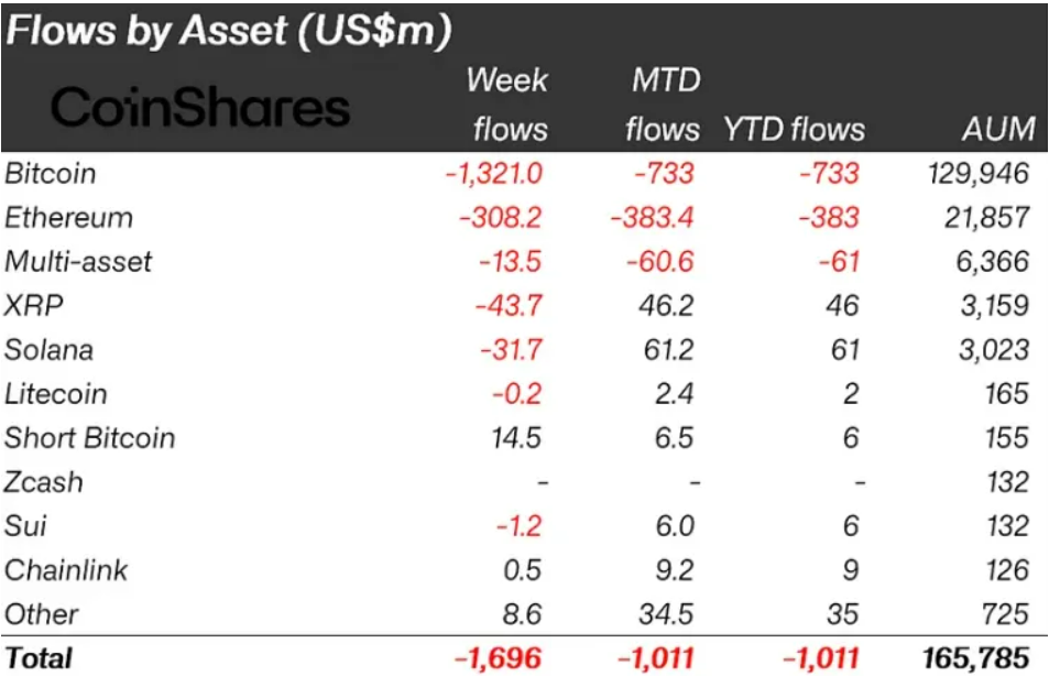 На рынке цифровых активов растет пессимизм. Согласно недавнему отчету CoinShares, инвестиционные продукты на основе криптовалют фиксируют отток капитала вторую неделю подряд. За последние семь дней инвесторы вывели $1,7 млрд.
