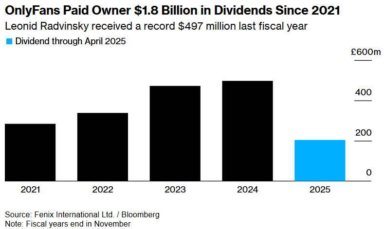 Платформа контента для взрослых только FANS выплатила своему владельцу, украинско-американскому предпринимателю Леонид Радвински, 701 миллион долларов. Это произошло накануне потенциальной продажи компании, которая оценивается в 8 миллиардов долларов, сообщает Bloomberg.