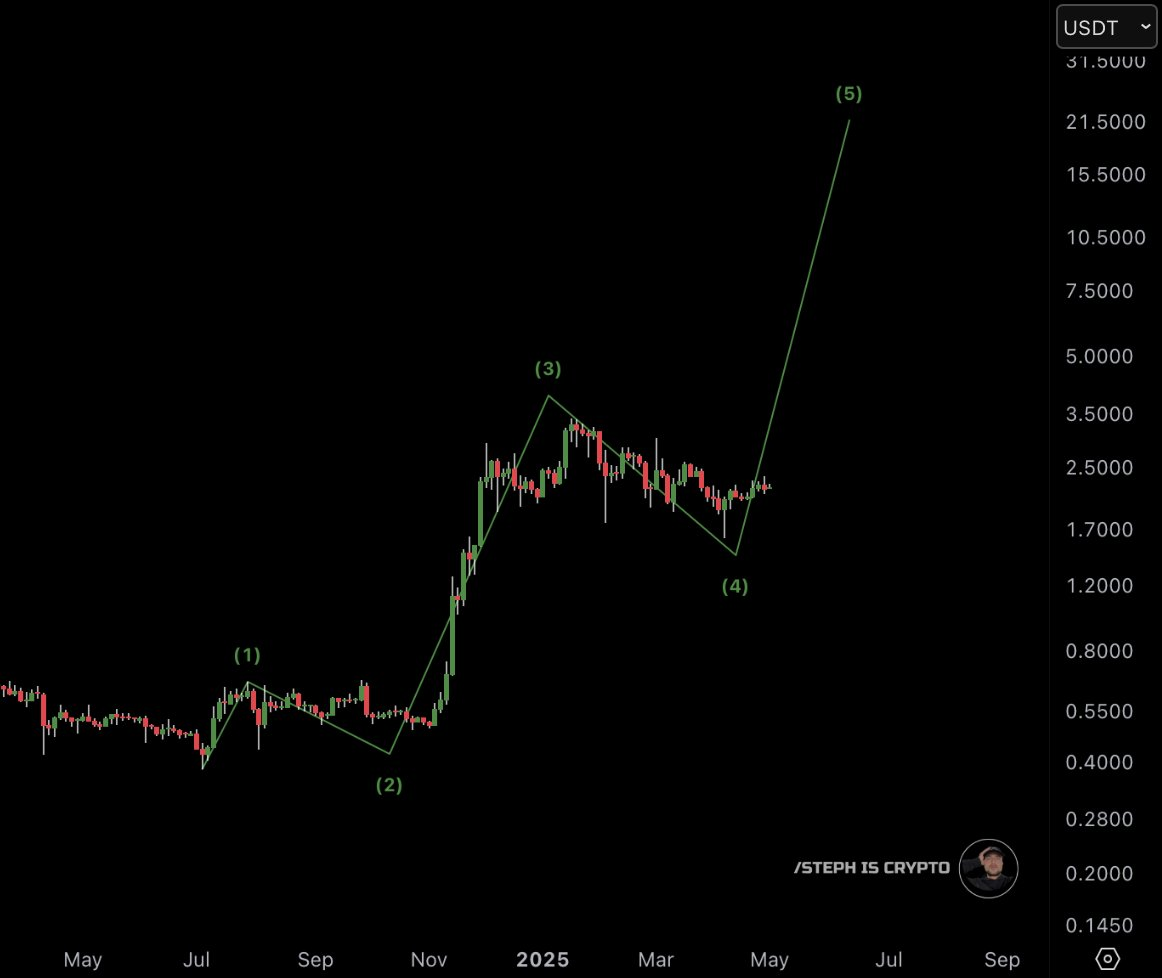 Аналитик как возможный катализатор восходящей тенденции дал волну пятой высоты формулы цены на основе Elliott (Elliott Wave). Остается оптимиста, что XRP достигнет целевой цены до конца года, хотя текущая цена составляет 350% от цели.