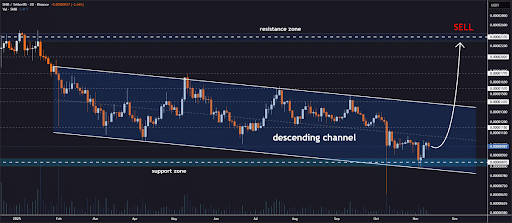 Помимо этих сигналов, график SHIB показывает нисходящий канал, приближающийся к конечной фазе. Структура канала остается неизменной. Сжатие цены увеличивается по мере приближения токена к средней линии. Это указывает на потенциальный прорыв и усиливает позитивный прогноз для SHIB. Целевые значения отскока для SHIB составляют 0,00001150 долларов США, 0,00001410 долларов США, 0,00001570 долларов США, 0,00001770 долларов США, 0,00002020 долларов США и, возможно, 0,00002370 долларов США. Если цена успешно пробьет среднюю линию, это может спровоцировать значительный рост в ближайшие недели.