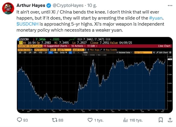 В сообщении, опубликованном сегодня на платформе X от 8 апреля, Хейс предположил, что это не американский федеральный резерв, и Народный банк Китай (PBOC) может стать катализатором нового бычьего рынка в криптовалютах.