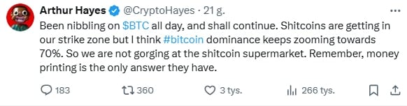 На фоне эскалационного коммерческого конфликта с США Китай объявил о своих сильных коллегах. В то же время Хейс укрепляет свою позицию в биткойнах, несмотря на неопределенность на рынке альткойнов. В недавнем посте он признал, что «Он накапливал $ BTC в течение дня»что указывает на его веру в силу Биткойна.