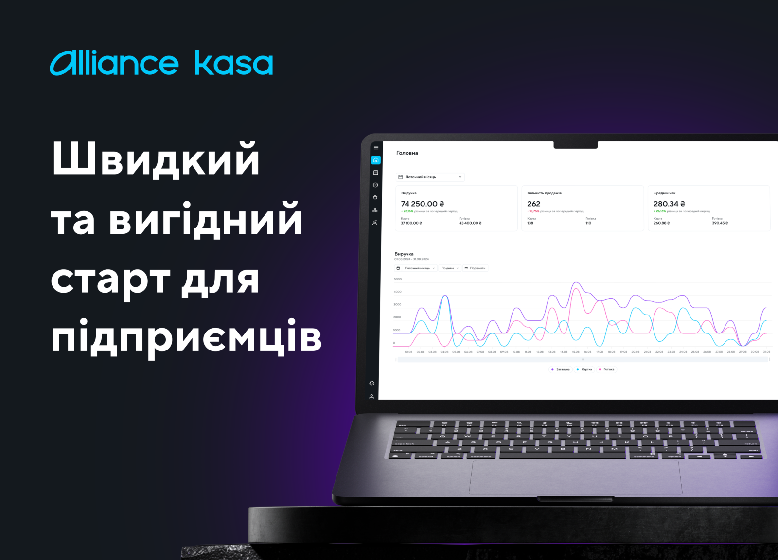 Интуитивный интерфейс Alliance kasa максимально удобен и сводит к минимуму потребность в сторонней помощи. Для малого и среднего бизнеса это готовое решение, которое экономит время, снижает риски и обеспечивает простую и прозрачную интеграцию с налоговой системой Украины.