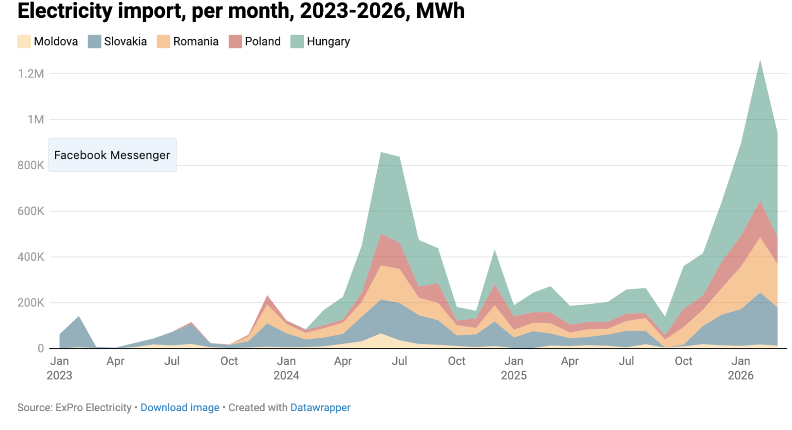 По сравнению с мартом 2025 г. импорт электроэнергии в Украину вырос в 3,4 раза.