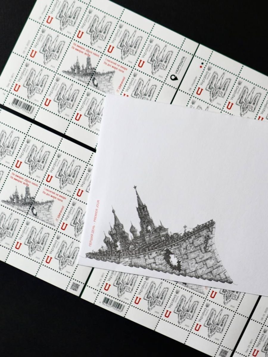 На почтовой марке, созданной по мотивам произведений художника Дмитрия Крышовского, изображены два символа украинского сопротивления и неукротимости, определившие новейшую историю страны: