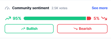 - Сообщество сосредоточено: Оба проекта уделяют большое внимание созданию сильного, активного сообщества. Высота Шиба работала почти исключительно благодаря энтузиазму розничной торговли и вируса в Интернете — Xyzverse использует аналогичную динамику нижней части и 95% избирателей в Coinmarketcap в настоящее время выражает перспективу быка.