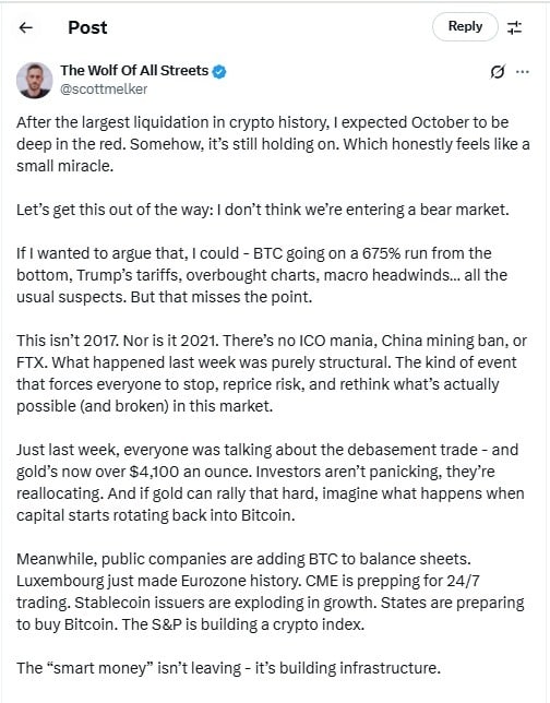Криптовалютный рынок снова переживает переломный момент. После серии динамичных повышений в начале октября последние дни принесли резкие колебания цен и растущую неуверенность среди инвесторов. Биткойн и Эфириум — две крупнейшие криптовалюты в мире — претерпели коррекцию, которая остановила динамику всего сектора и поставила вопрос: является ли это началом более глубокого охлаждения или просто временным перерывом перед следующей волной роста?