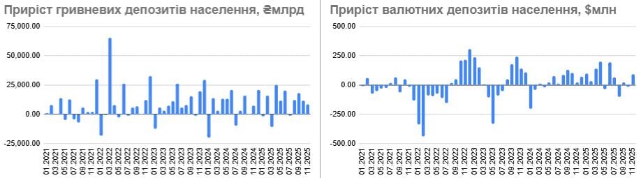 В ноябре 2025 года, по данным НБУ, население увеличило вклады до нового исторического максимума в 1 355,5 млн грн (+14,4% г/г, +1,1% м/м). Об этом пишет финансовый аналитик Андрей Шевчишин.