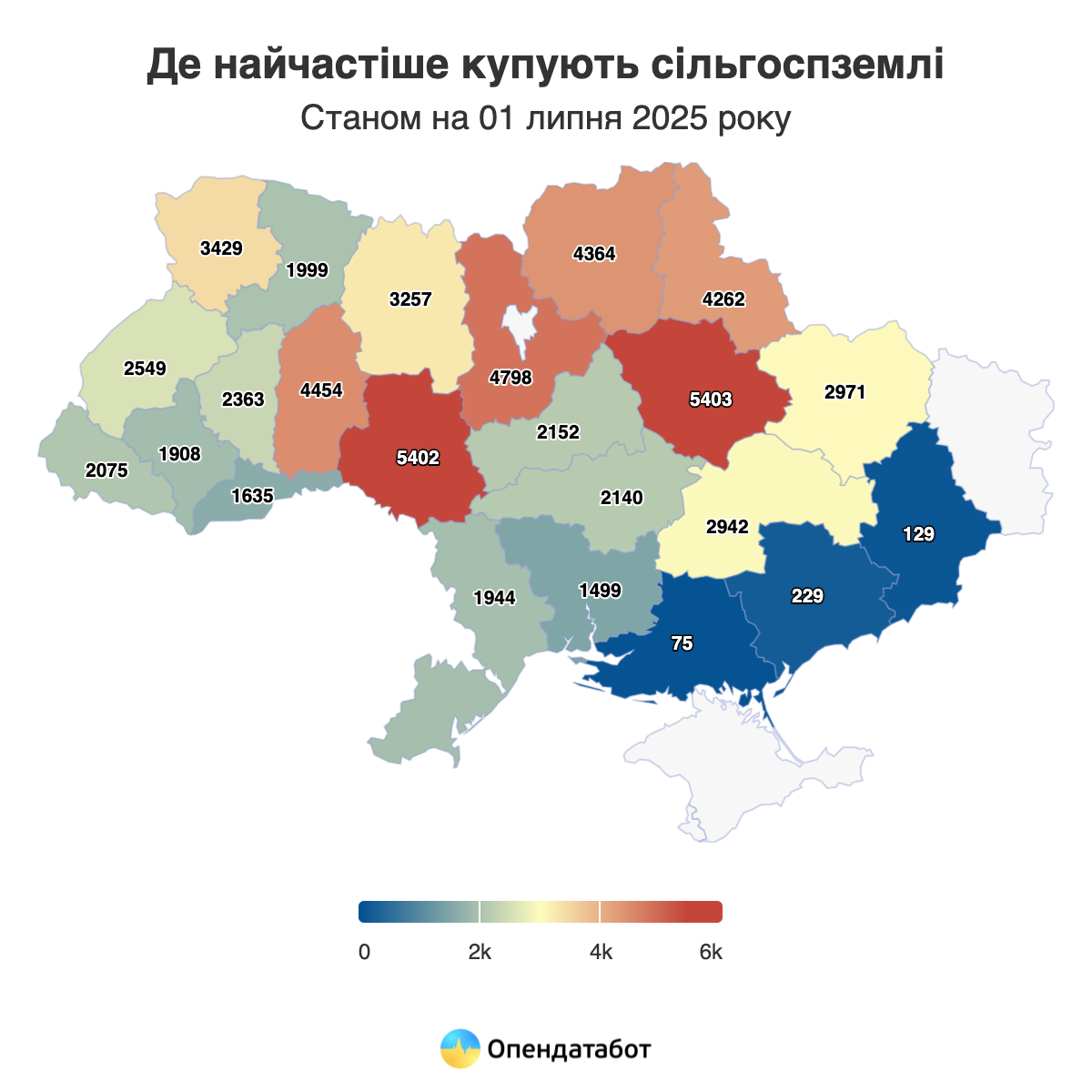 В этом году, земля в Полтаве (5,4 тысячи соглашений), Винница (5,4 тысячи) и регион Кив (4,7 тысячи) наиболее активны.