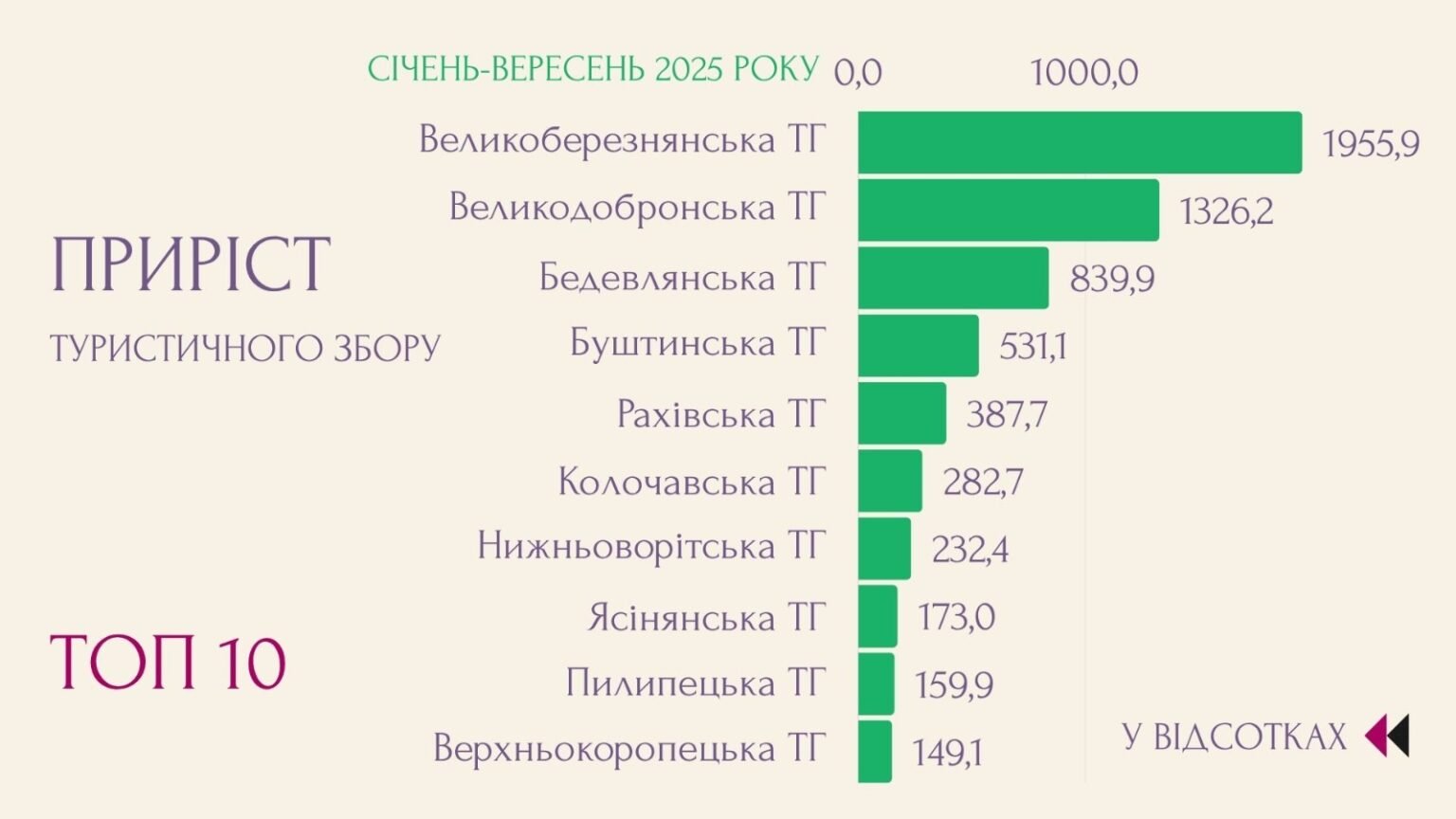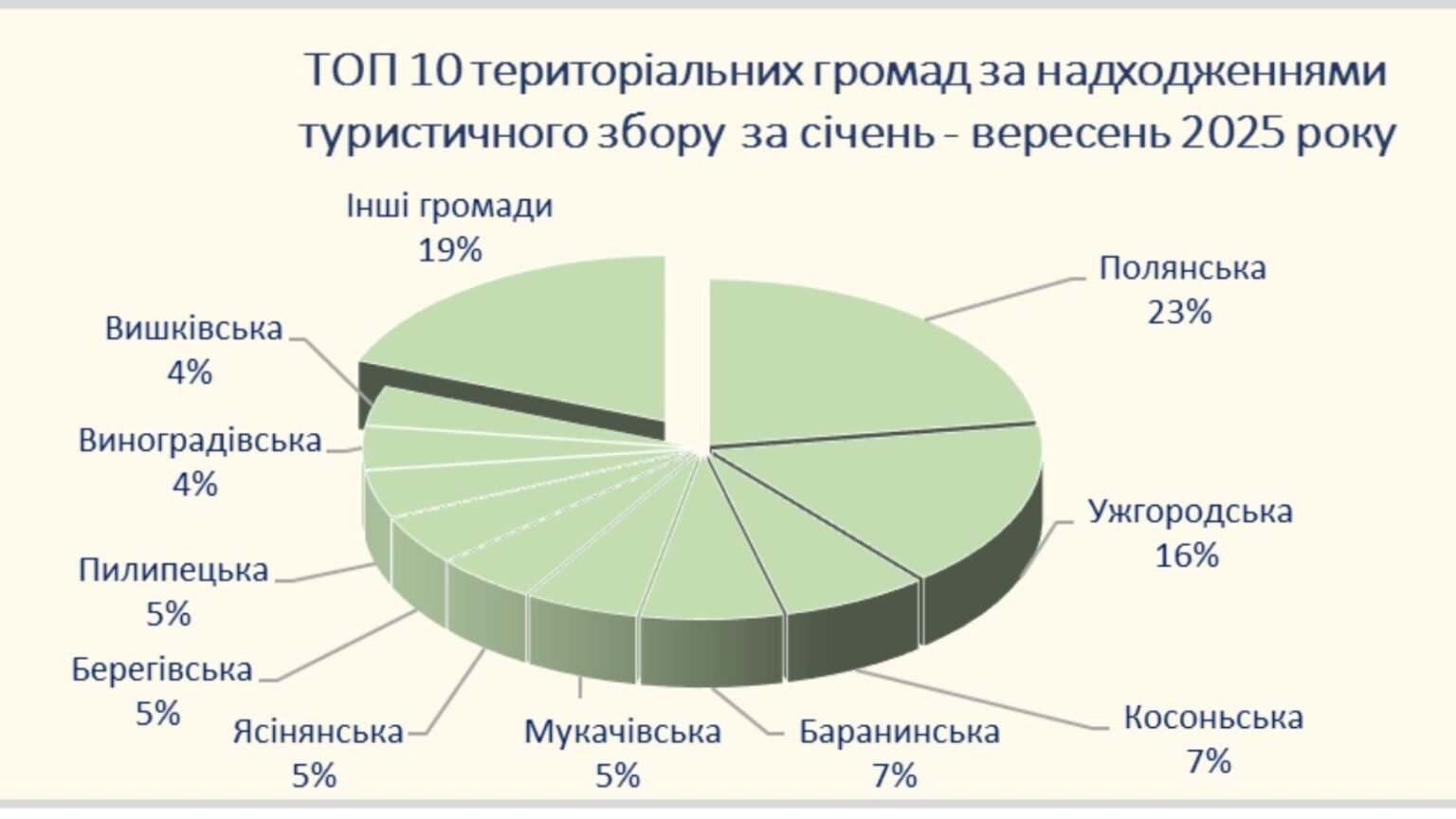 За 9 месяцев 2025 года в местные бюджеты Закарпатской области уплачено 21 миллион 170 тысяч гривен туристического сбора, что на 40% больше, чем за аналогичный период 2024 года. Об этом сообщили в «Туризме и курортах Закарпатья Ова».