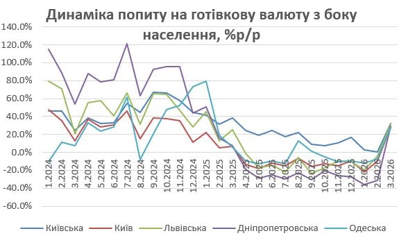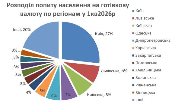 Анализ наличного валютного рынка за первый квартал 2026 демонстрирует традиционное лидерство столицы и неожиданные изменения в региональной динамике. Несмотря на то, что основной всплеск спроса пришелся на март, поведение покупателей в разных областях существенно отличалось. Об этом сообщил финансовый аналитик Андрей Шевчишин на своей странице в Facebook.