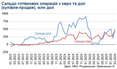 Март 2026 года стал знаковым для украинского валютного рынка из-за аномально высокого интереса населения к европейской валюте. Впервые за долгое время чистый спрос на евро сравнялся с показателями доллара США, установив новый исторический рекорд. Об этом сообщил финансовый аналитик Андрей Шевчишин на своей странице в Facebook.