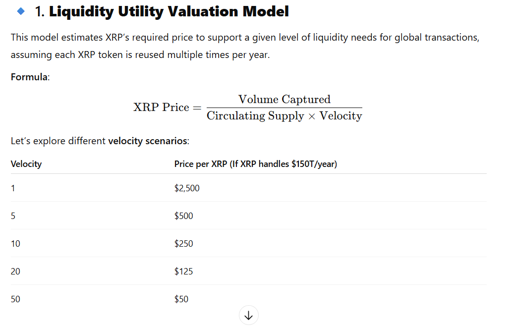 CHATGPT смоделировал цену XRP на основе различных моделей, предполагая, что Swift примет ее как медицинский актив в обеспечении глобальной ликвидности. В настоящее время Swift обслуживает транзакции с общей стоимостью 150 триллионов долларов в год. Модели включают в себя, как XRP может масштабироваться в соответствии с этим томом: