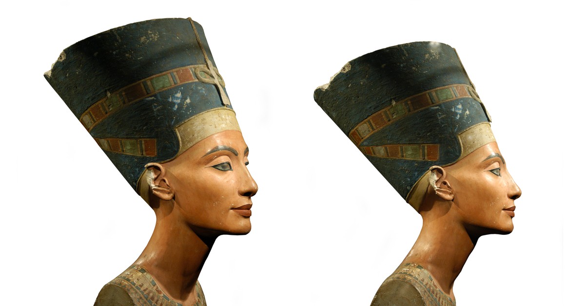 Скульптура была создана около 1345 г. до н.э. и обнаружена в 1912 г. команда немецкого археолога Людвига Борхардта. Год спустя она уехала в Берлин. С того времени Египет неоднократно добивался его возвращения.